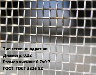 Сетка тканая квадратная d=0.22 Ячейка: 0.7х0.7 ГОСТ: ГОСТ 3826-82