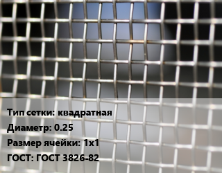Сетка тканая квадратная d=0.25 Ячейка: 1х1 ГОСТ: ГОСТ 3826-82