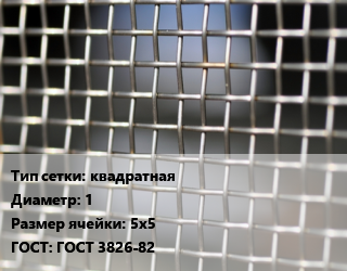 Сетка тканая квадратная d=1 Ячейка: 5х5 ГОСТ: ГОСТ 3826-82