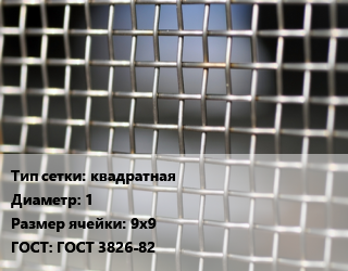 Сетка тканая квадратная d=1 Ячейка: 9х9 ГОСТ: ГОСТ 3826-82