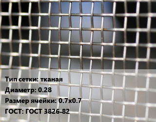 Сетка тканая тканая d=0.28 Ячейка: 0.7х0.7 ГОСТ: ГОСТ 3826-82