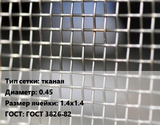 Сетка тканая тканая d=0.45 Ячейка: 1.4х1.4 ГОСТ: ГОСТ 3826-82