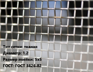 Сетка тканая тканая d=1.2 Ячейка: 5х5 ГОСТ: ГОСТ 3826-82