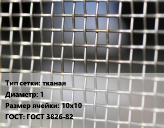 Сетка тканая тканая d=1 Ячейка: 10х10 ГОСТ: ГОСТ 3826-82