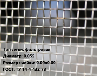 Сетка тканая фильтровая d=0.055 Ячейка: 0.09х0.09 ГОСТ: ТУ 14-4-432-73
