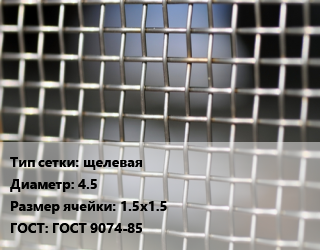 Сетка тканая щелевая d=4.5 Ячейка: 1.5х1.5 ГОСТ: ГОСТ 9074-85