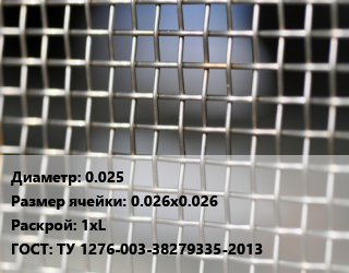 Сетка тканая 0.025 Ячейка: 0.026х0.026 1хL ГОСТ: ТУ 1276-003-38279335-2013