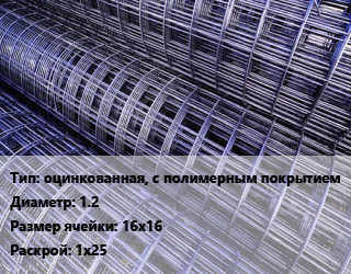Сетка оцинкованная, с полимерным покрытием d=1.2 Ячейка: 16х16 Раскрой: 1х25