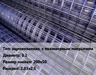 Сетка оцинкованная, с полимерным покрытием d=3.2 Ячейка: 200х50 Раскрой: 2.03х2.5