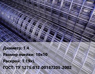 Сетка 1.4 Ячейка: 10х10 Раскрой: 1.19хL ГОСТ: ТУ 1275-012-00187205-2002