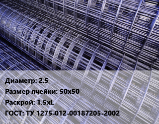 Сетка 2.5 Ячейка: 50х50 Раскрой: 1.5хL ГОСТ: ТУ 1275-012-00187205-2002