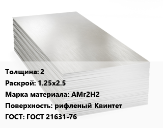 Алюминиевый лист 2 1.25х2.5 Марка: АМг2Н2 рифленый Квинтет ГОСТ: ГОСТ 21631-76