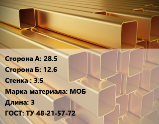 Труба медная профильная 28.5х12.6 s=3.5 Марка: МОБ L=3 ГОСТ: ТУ 48-21-57-72