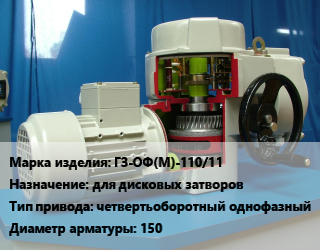 Электропривод ГЗ-ОФ(М)-110/11 для дисковых затворов четвертьоборотный однофазный 150
