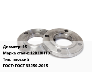 Фланец нержавеющий 15 Сталь: 12Х18Н10Т плоский ГОСТ: ГОСТ 33259-2015