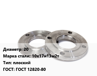 Фланец нержавеющий 20 Сталь: 10х17н13м2т плоский ГОСТ: ГОСТ 12820-80