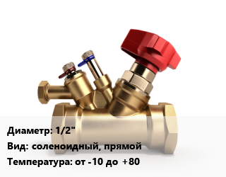 Клапан латунный 1/2" соленоидный, прямой от -10 до +80