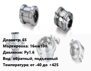 Клапан нержавеющий 65 16нж10п Ру1.6 обратный, подъемный от -40 до +425