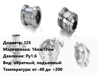 Клапан нержавеющий 125 16нж10нж Ру1.6 обратный, подъемный от -40 до +200