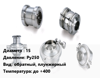 Клапан нержавеющий 15 Ру250 обратный, плунжерный до +400