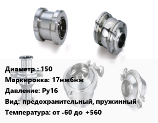 Клапан нержавеющий 150 17нж6нж Ру16 предохранительный, пружинный от -60 до +560