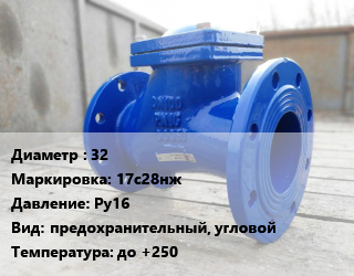 Клапан стальной 32 17с28нж Ру16 предохранительный, угловой до +250