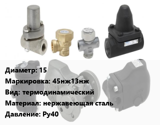Конденсатоотводчик 15 45нж13нж термодинамический нержавеющая сталь Ру40