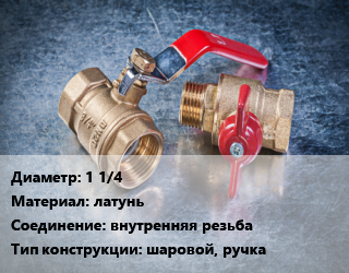 Кран металлический 1 1/4 латунь внутренняя резьба шаровой, ручка