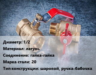 Кран металлический 1/2 латунь гайка-гайка Сталь: 20 шаровой, ручка-бабочка