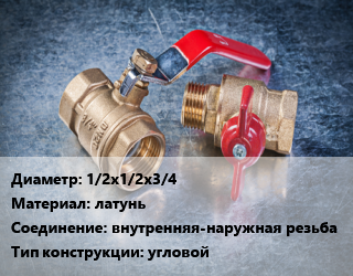 Кран металлический 1/2х1/2х3/4 латунь внутренняя-наружная резьба угловой, вода, пар, Ру10, шт цена от 204.3 сом / шт, где купить, условия доставки в Бишкеке и Чуйской области