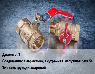 Кран металлический 1 американка, внутренняя-наружная резьба шаровой