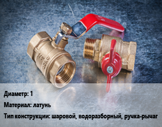 Кран металлический 1 латунь шаровой, водоразборный, ручка-рычаг