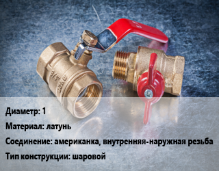 Кран металлический 1 латунь американка, внутренняя-наружная резьба шаровой