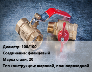 Кран металлический 100/100 фланцевый Сталь: 20 шаровой, полнопроходной