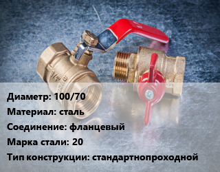 Кран металлический 100/70 сталь фланцевый Сталь: 20 стандартнопроходной