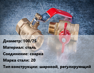 Кран металлический 100/75 сталь сварка Сталь: 20 шаровой, регулирующий