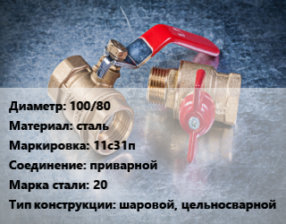 Кран металлический 100/80 сталь 11с31п приварной Сталь: 20 шаровой, цельносварной