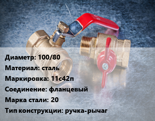 Кран металлический 100/80 сталь 11с42п фланцевый Сталь: 20 ручка-рычаг