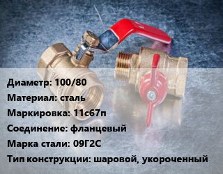 Кран металлический 100/80 сталь 11с67п фланцевый Сталь: 09Г2С шаровой, укороченный