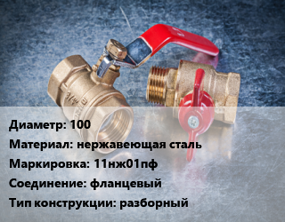 Кран металлический 100 нержавеющая сталь 11нж01пф фланцевый разборный