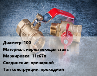 Кран металлический 100 нержавеющая сталь 11с67п приварной проходной