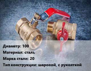 Кран металлический 100 сталь Сталь: 20 шаровой, с рукояткой