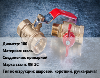 Кран металлический 100 сталь приварной Сталь: 09Г2С шаровой, короткий, ручка-рычаг