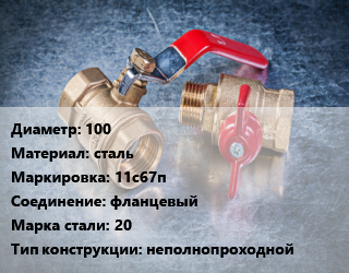 Кран металлический 100 сталь 11с67п фланцевый Сталь: 20 неполнопроходной