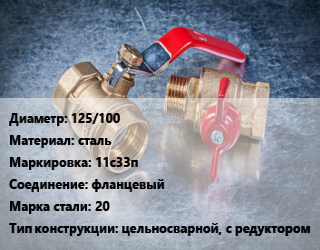 Кран металлический 125/100 сталь 11с33п фланцевый Сталь: 20 цельносварной, с редуктором