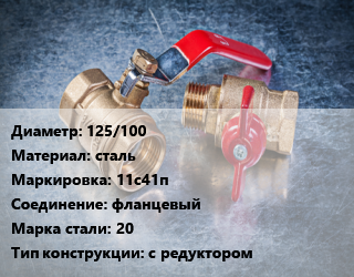 Кран металлический 125/100 сталь 11с41п фланцевый Сталь: 20 с редуктором