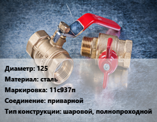 Кран металлический 125 сталь 11с937п приварной шаровой, полнопроходной