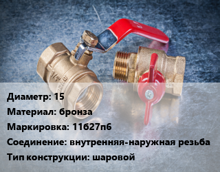 Кран металлический 15 бронза 11б27п6 внутренняя-наружная резьба шаровой