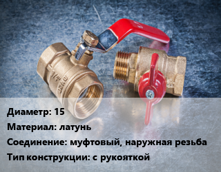 Кран металлический 15 латунь муфтовый, наружная резьба с рукояткой