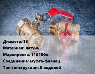 Кран металлический 15 латунь 11б18бк муфта-фланец 3-ходовой